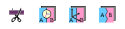 In addition to representing the motions and states of the recording device we also can represent the 'look' of the recording medium. Icons for recording medium are subdivided vertically into stock (70 mm film, 8 mm video, etc.), colour quality (colour, black & white, sepia, etc.), and graininess (fine, medium, coarse, etc.)