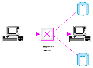 In circuit switched networks the connections between the user terminal and the information service are switched in the telephone switches. This does not allow several services to utilise the same connection - hence the connection has to be switched between the services