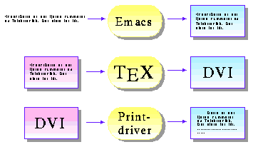 The three document processing stages of TeX; editing, formatting, and presentation