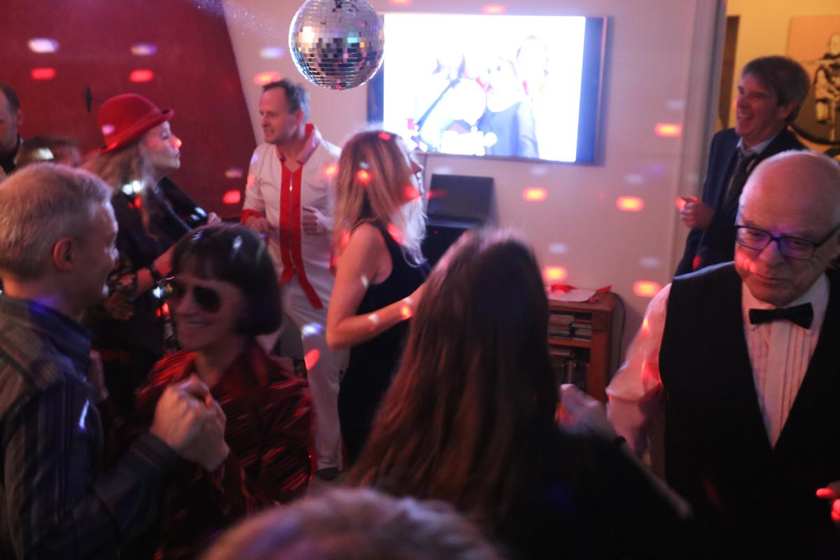 Dersom rette låt kom på ble hun også med i dansen. «Keep on rocking in the free world» var en slik låt, og i et av bildene under kan du oss danse. (Audun Engh, en annen bauta som også forlot oss for tidlig, hadde samme forhold til denne låta, han sees til høyre.)